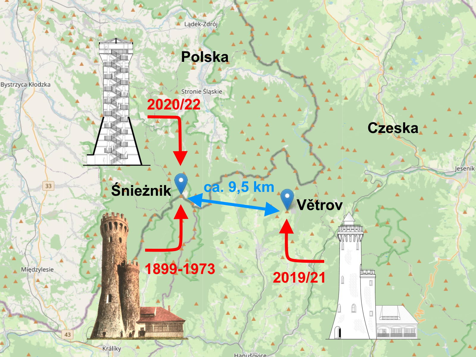 Quellen: Internetseiten dalimilovarozhledna.cz, 24klodzko.pl, turistika.cz, facebook.com/sneznik.cz