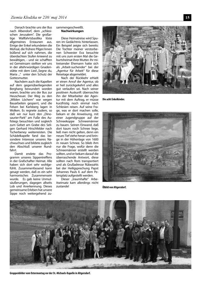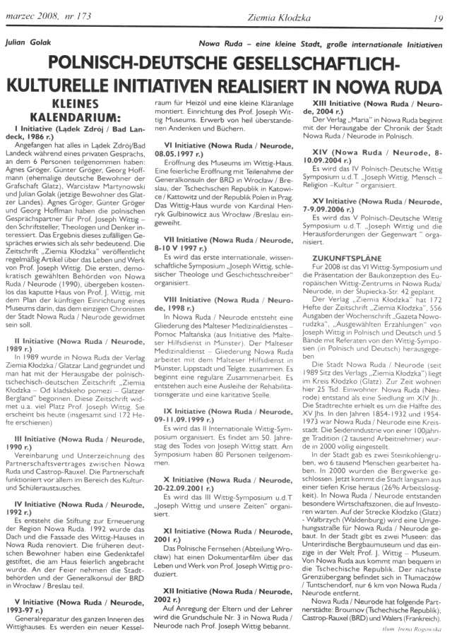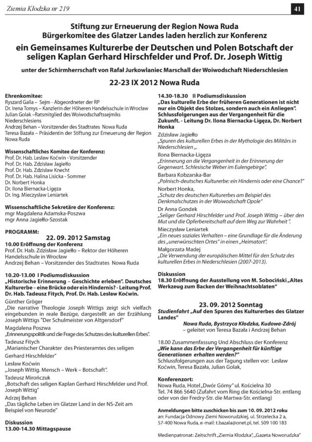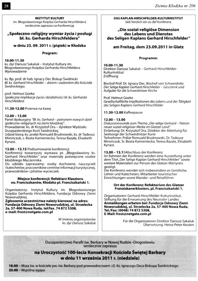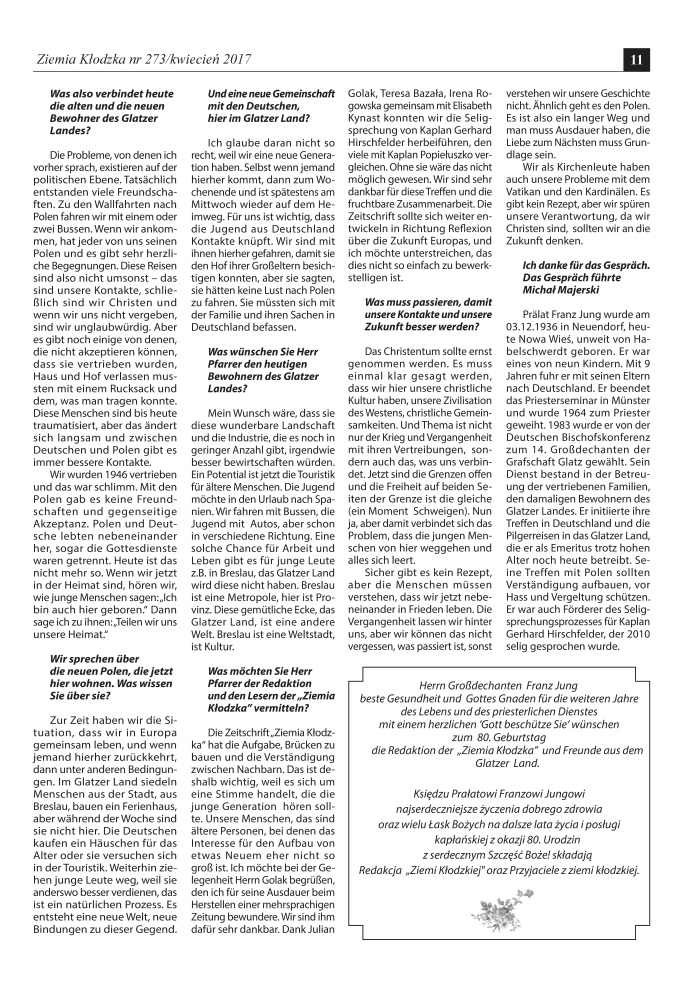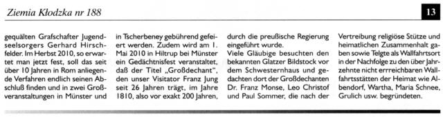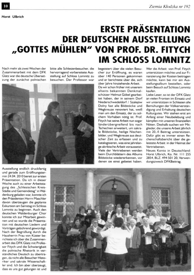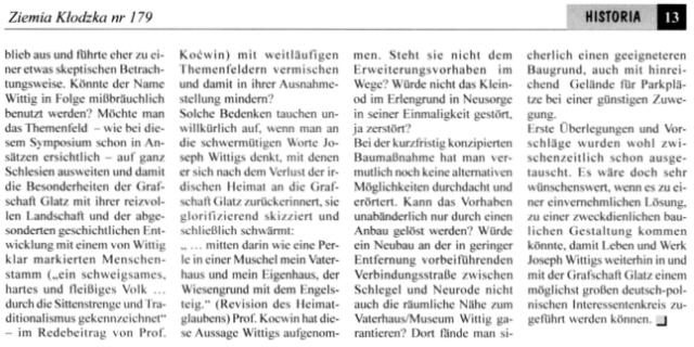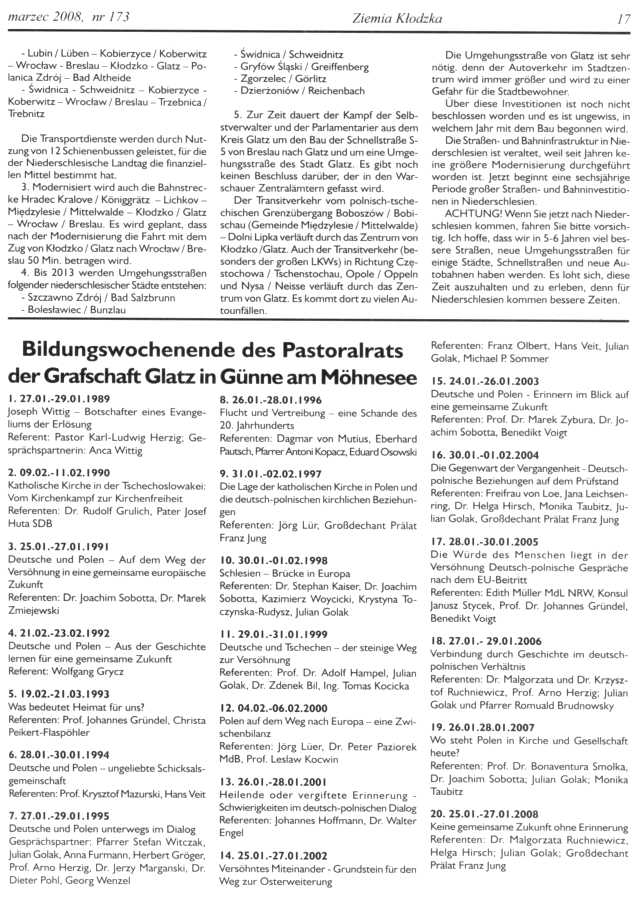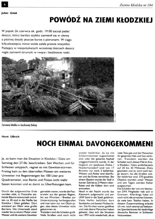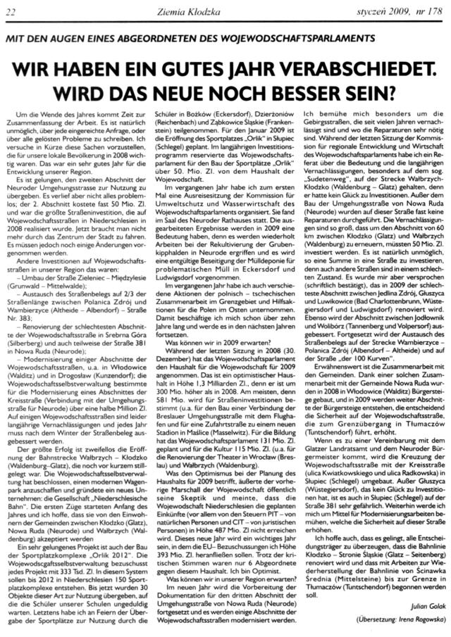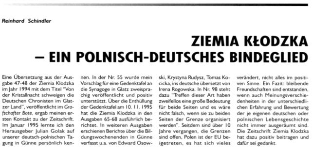 Es ist unklar, wie es mit der Zeitschrift „Ziemia Kłodzka – Glatzer Bergland“ weitergehen soll, da es kaum Zuschüsse gibt. Es ist doch die einzige Zeitung, die in drei Sprachen herauskommt, Es wäre gut, Beiträge an die Redaktion der Zeitung zu schicken.