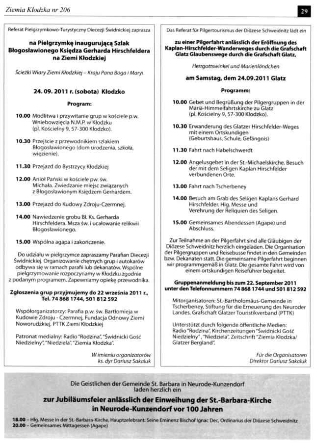 Liebe Freunde und Bezieher der „Ziemia Kłodzka“