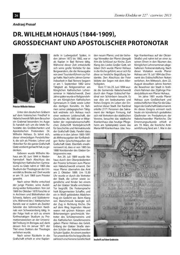 - Dr. Wilhelm Hohaus (1844-1909), Großdechant und Apostolischer Protonotar: Seite 1 - Seite 2