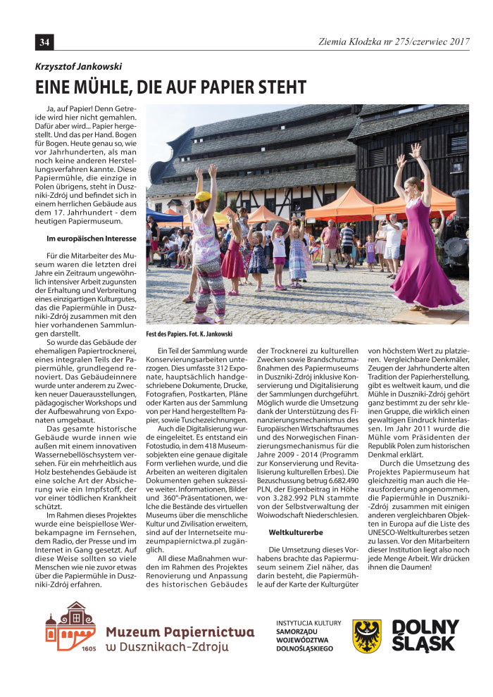 - Das Papiermuesum in Duszniki Zdrój ist der Träger des niederschlesischen Kulturpreises Silesia 2008