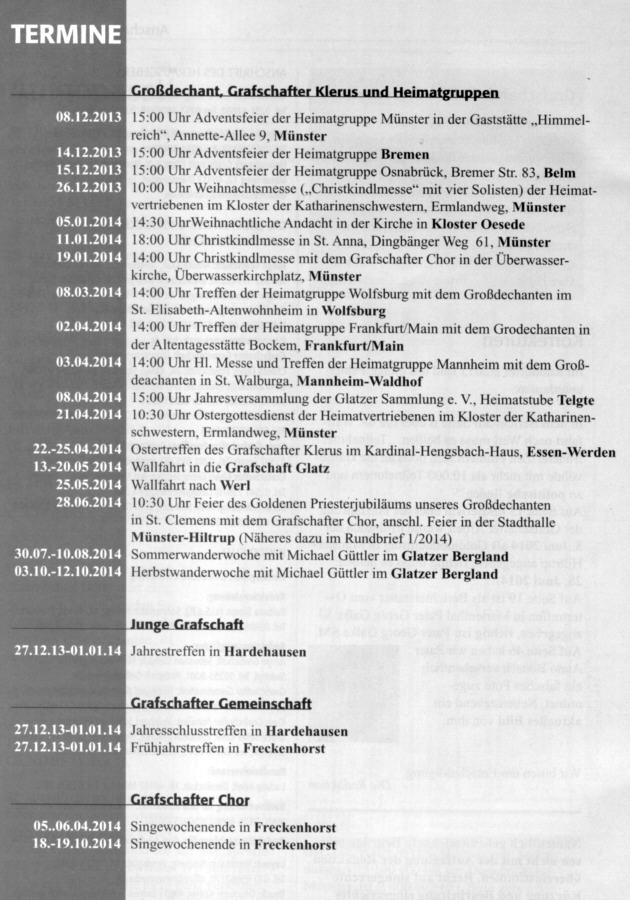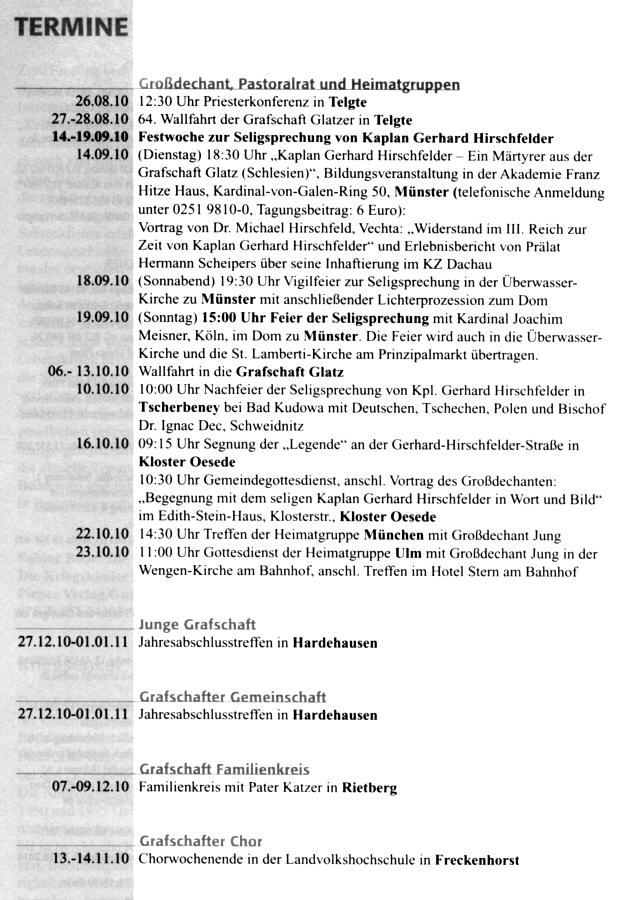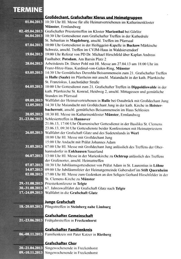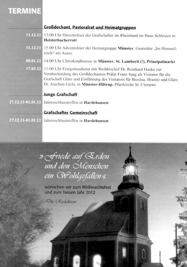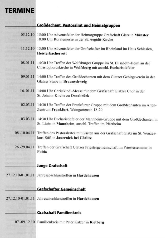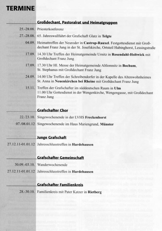 Vielleicht wissen Sie es bereits oder auch nicht: Als Kirche und Visitatur der Grafschaft Glatz haben wir einen neuen Rundbrief herausgegeben, der nicht nur die Bereiche der bestehenden Gruppen des Großdechanten abdeckt, sondern vor allem auch Wissens- und Bedenkenswertes aus dem kirchlichen Leben der Grafschafter Arbeit und darüber hinaus berichtet. Dazu zählen alle Ereignisse, die wir im Grafschafter Boten aus Platzgründen nicht unterbringen können.
