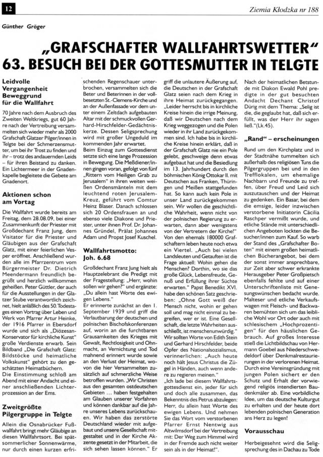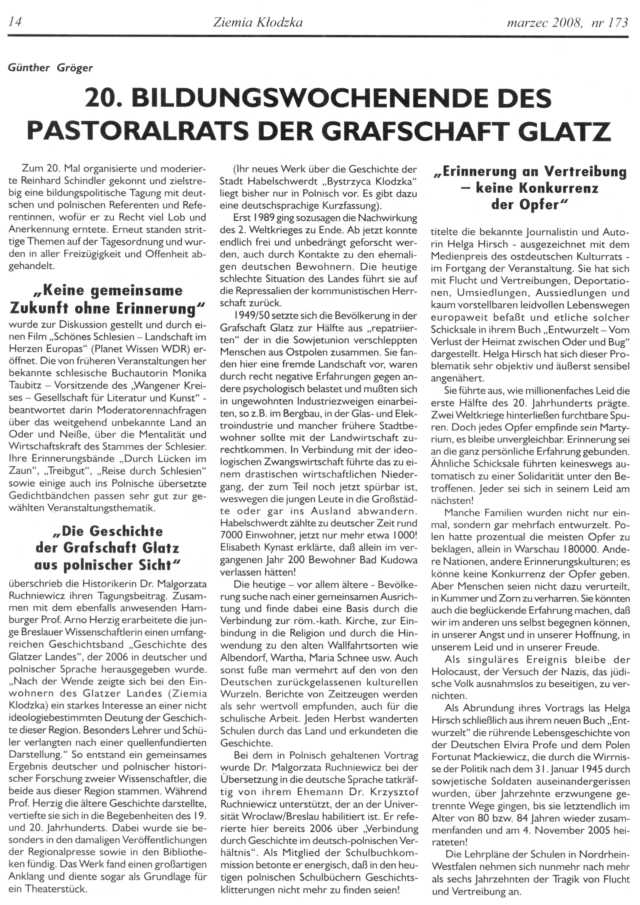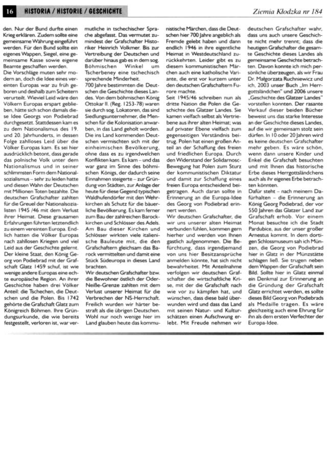 Es ist unklar, wie es mit der Zeitschrift „Ziemia Kłodzka – Glatzer Bergland“ weitergehen soll, da es kaum Zuschüsse gibt. Es ist doch die einzige Zeitung, die in drei Sprachen herauskommt, Es wäre gut, Beiträge an die Redaktion der Zeitung zu schicken.