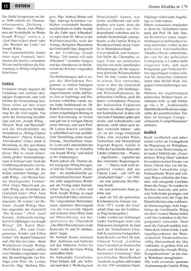 - Arno Herzig: Joseph Wittig und die Geschichte des Glatzer Landes