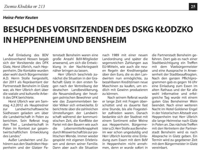 Liebe Freunde und Bezieher der „Ziemia Kłodzka“